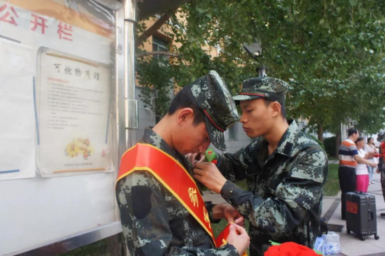 為你悉心整理綬帶,相互幫助帶上大紅花,從前是同窗是同學,從今天起,我們變成了戰友。