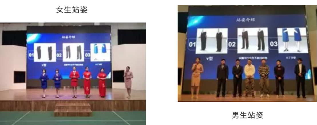 活動現場,陸老師介紹了站姿和手勢等知識。不同性別、不同身材的人適合的站姿不同,通過現場示范和圖片展示,讓同學們有了更加深刻的學習和理解。