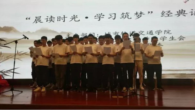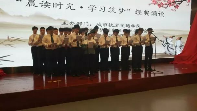 軌道學院通過誦讀以達到文化熏陶、智能鍛煉與人格培養(yǎng)的目的。了解優(yōu)秀的中華文化和民族精神,從而產(chǎn)生民族自豪感和愛國主義情思。讓優(yōu)秀的中華文化和民族精神在學生的心靈中不斷地產(chǎn)生潛移默化的作用,潛移默化地陶冶其性情。
