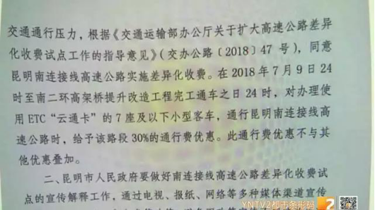 從去年7月9號開始,南繞城高速差異化收費開始實施,對辦理使用ETC運通卡的7座及以下小型客車,通行昆明南連接線高速公路給予路段30%的通行費優惠,通行費優惠不與其它優惠疊加。