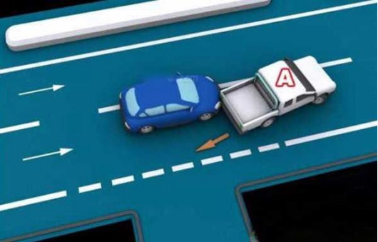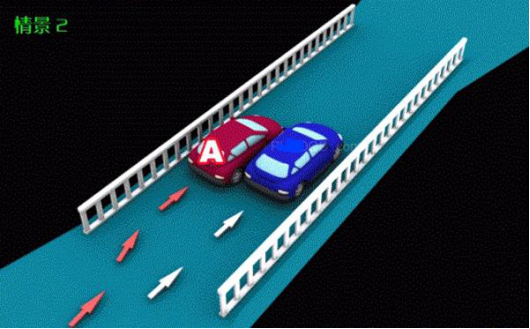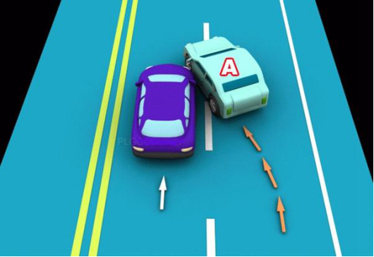 1、變更車道時,未讓正在該車道內行駛的車先行的,圖中所示為A車負全責。