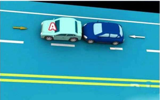 7、與對面來車有會車可能時超車的,圖中所示為A車負全責。