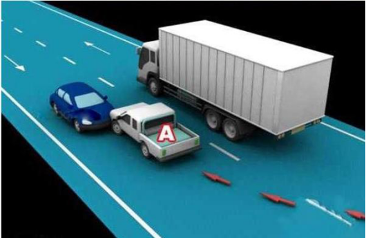 2、裝載的貨物遺灑過程中導致交通事故的,圖中所示,均為A車全責。