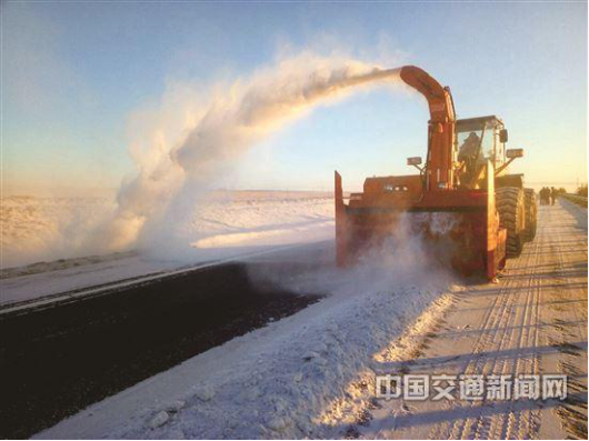內蒙古呼倫貝爾市海拉爾區公路養護處工作人員及時清除202省道積雪。孫吉成 攝