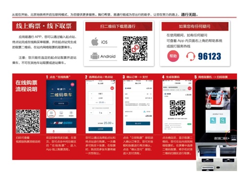 自2017年9月20日起,乘客通過使用易通行APP,可在線購買30天內(nèi)的單程票,并在車站的自助網(wǎng)絡(luò)取票機(jī)上取票進(jìn)站,或直接刷手機(jī)APP內(nèi)的乘車二維碼進(jìn)出站。這就大大縮短直至完全消除了乘客在車站排隊(duì)買票的時(shí)間,從而有效提升乘客的出行效率,改善出行體驗(yàn)。同時(shí),也能夠減少運(yùn)營企業(yè)在確保安全和運(yùn)營組織方面的壓力,對(duì)北京軌道交通建成安全、便捷、高效、綠色的運(yùn)營體系具有重要意義。