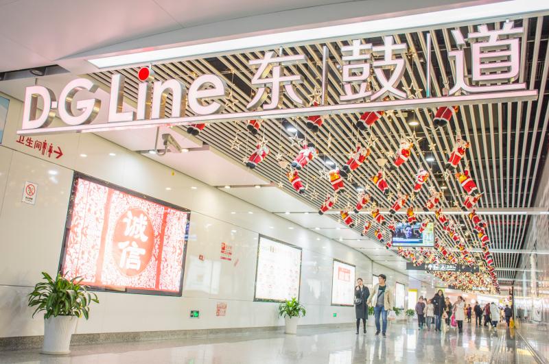 東鼓道地下商業街區地處寧波市最繁華的核心地段,位于軌道交通1號線東門口站與鼓樓站之間的地下空間。自2017年8月開業到2020年年底,商業街累計接待量超過5624萬人次,累計營業額超6億元,并于2020年12月獲評“全國城軌交通商業示范街”。