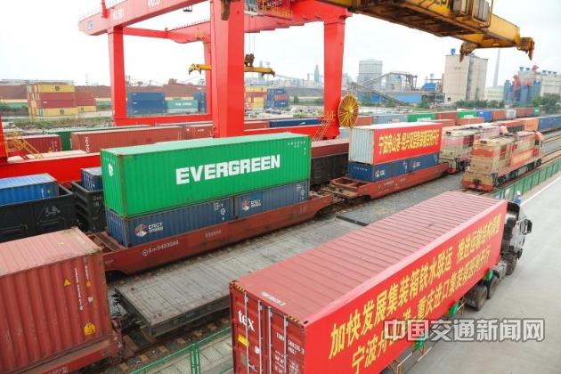 在創新服務方面,寧波全面推廣海鐵聯運全程運輸提單,實現船舶公司簽發提單至內陸城市,在進出口跨境物流缺箱、缺艙的情況下,優先保障業務點箱源和艙位供應。今年以來,寧波開通了跨境電商海鐵聯運專列、中遠海運海鐵聯運專列、“光伏號”海鐵聯運專列等特色專列。