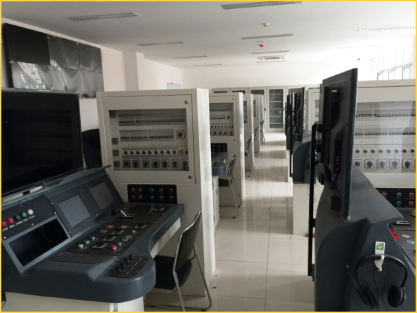 由五臺1:1比例的模擬車頭組成,通過投影融合技術模擬真實的地鐵場景,可供地鐵乘務員崗位的正常駕駛、故障處理、突發事件處理等多項工作任務的學習與訓練,實現學校教學與企業需求地對接。