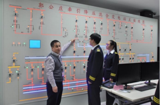 供電綜合實訓室:主要依托北京地鐵 9 號線郭公莊站的牽引混合變電站建成,由硬件設(shè)備、程控屏、三維教學軟件三大部分組成,可實現(xiàn)地鐵實際供電的模擬及演練、故障設(shè)置及故障排除,可為學生提供實訓演練、企業(yè)員工提供培訓等服務(wù)。