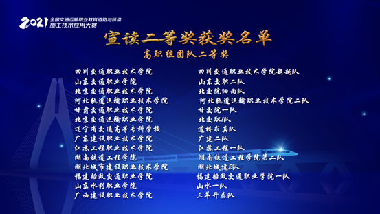 2021年11月27日至11月28日,全國交通運輸職業教育道路與橋梁施工技術應用技能大賽進行了線上總決賽。道路橋梁學院代表隊在高偉、杜一叢、毛竹、田亮四位老師的組織與指導下,取得了團體二等獎,并有多位選手獲得個人一等獎、二等獎的優異成績。