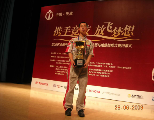 目前在三元橋一汽豐田旗艦店工作,2013年一汽豐田噴漆技能大賽華北區(qū)冠軍、全國優(yōu)秀獎