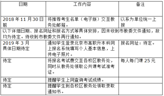 2019年高職升本科推薦工作日程安排(系室部分)