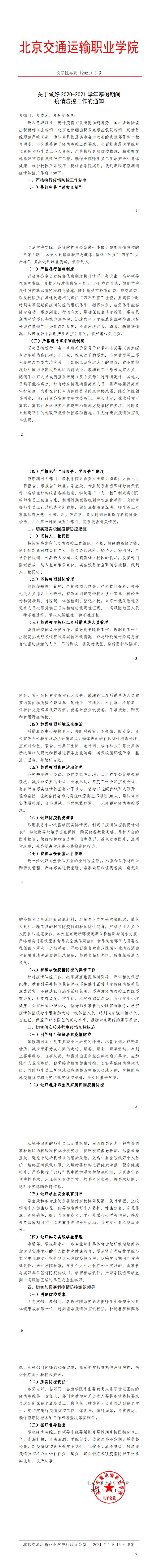 交職院辦發(fā)〔2021〕5號 關(guān)于做好2020-2021學(xué)年寒假期間疫情防控工作的通知