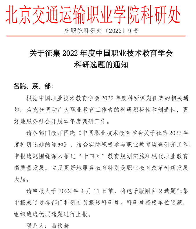 科研處-關于征集2022年度中國職業技術教育學會科研選題的通知
