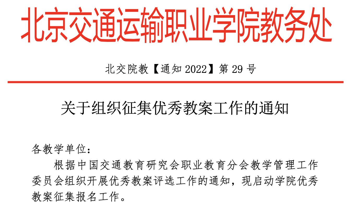 關于組織征集優秀教案工作的通知