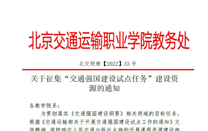 關(guān)于征集“交通強(qiáng)國(guó)建設(shè)試點(diǎn)任務(wù)”建設(shè)資源的通知
