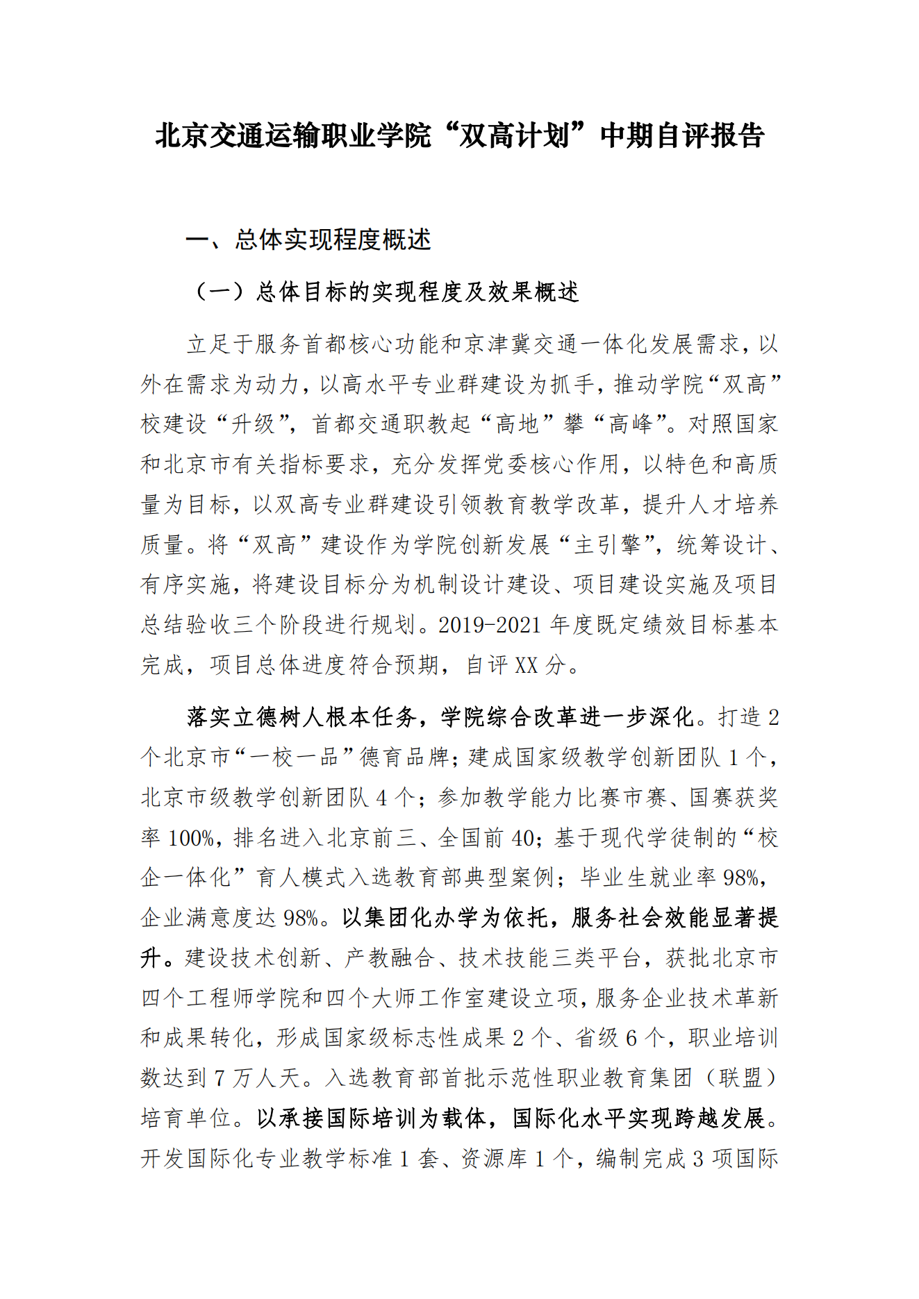 北京交通運(yùn)輸職業(yè)學(xué)院雙高中期績效評價自評報告