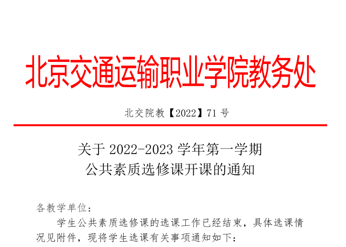 關于2022-2023學年第一學期公共素質選修課開課的通知