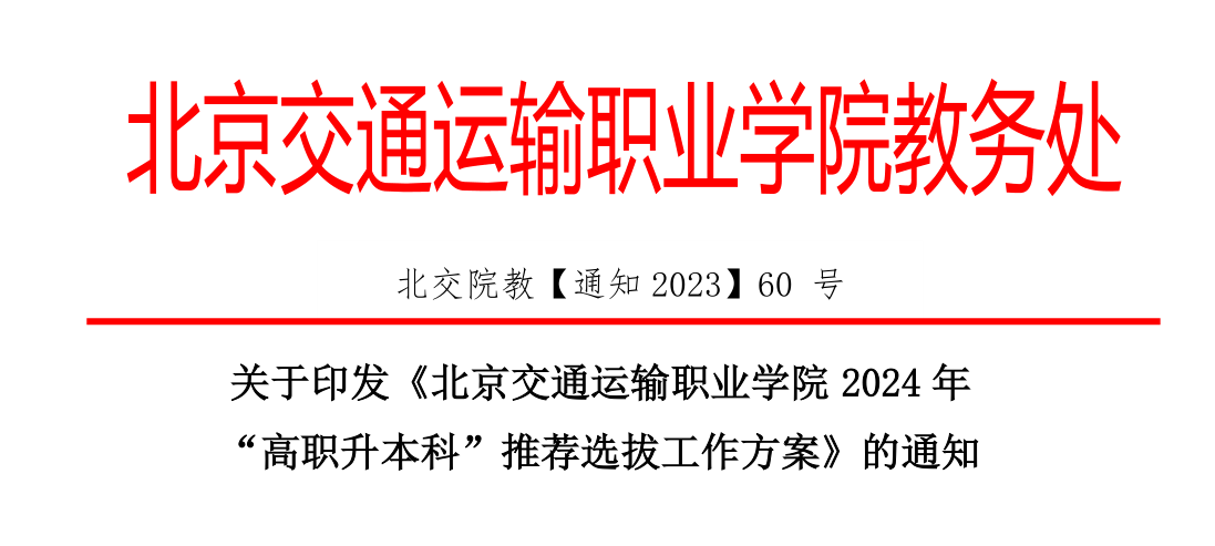 關于印發《北京交通運輸職業學院 2024 年 “高職升本科”推薦選拔工作方案》的通知
