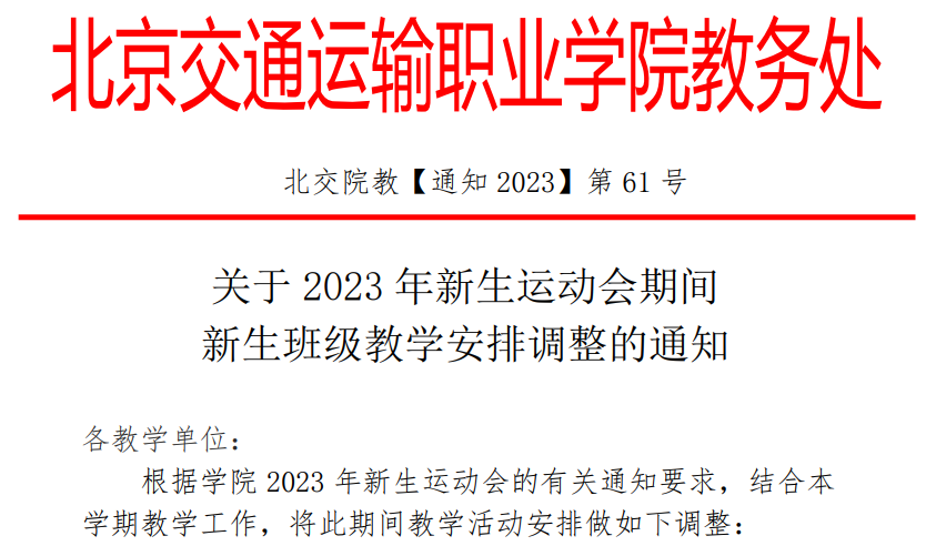 關(guān)于2023年新生運(yùn)動(dòng)會(huì)期間新生班級(jí)教學(xué)安排調(diào)整的通知