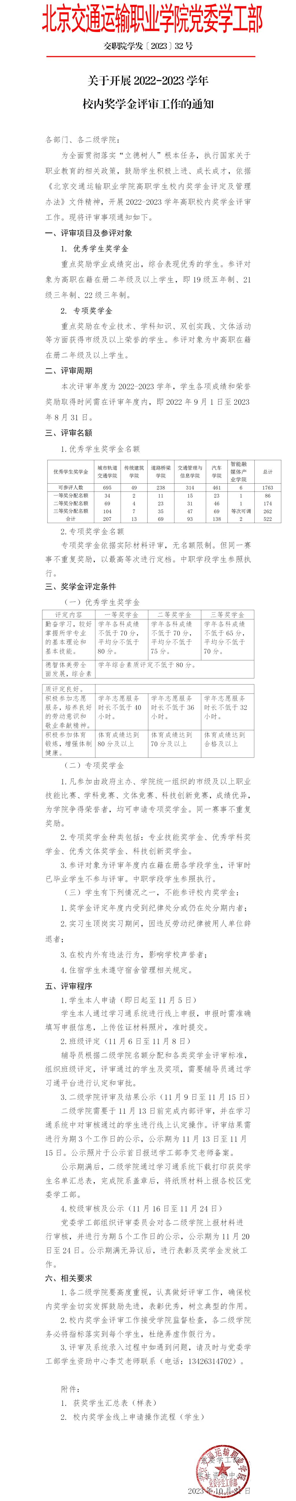 關于開展2022-2023學年校內獎學金評審工作的通知