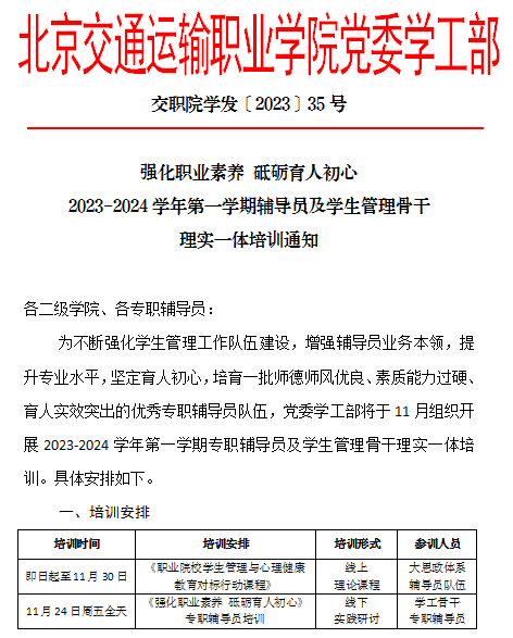 2023-2024-1輔導員及學生管理骨干理實一體培訓通知