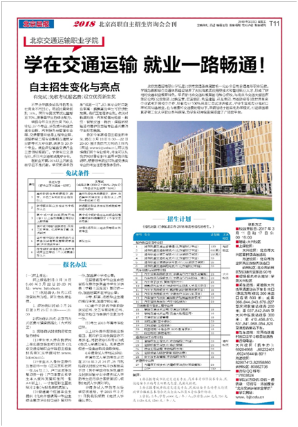 《北京晚報》文教版《2018年高職自主招生報考指南》特刊