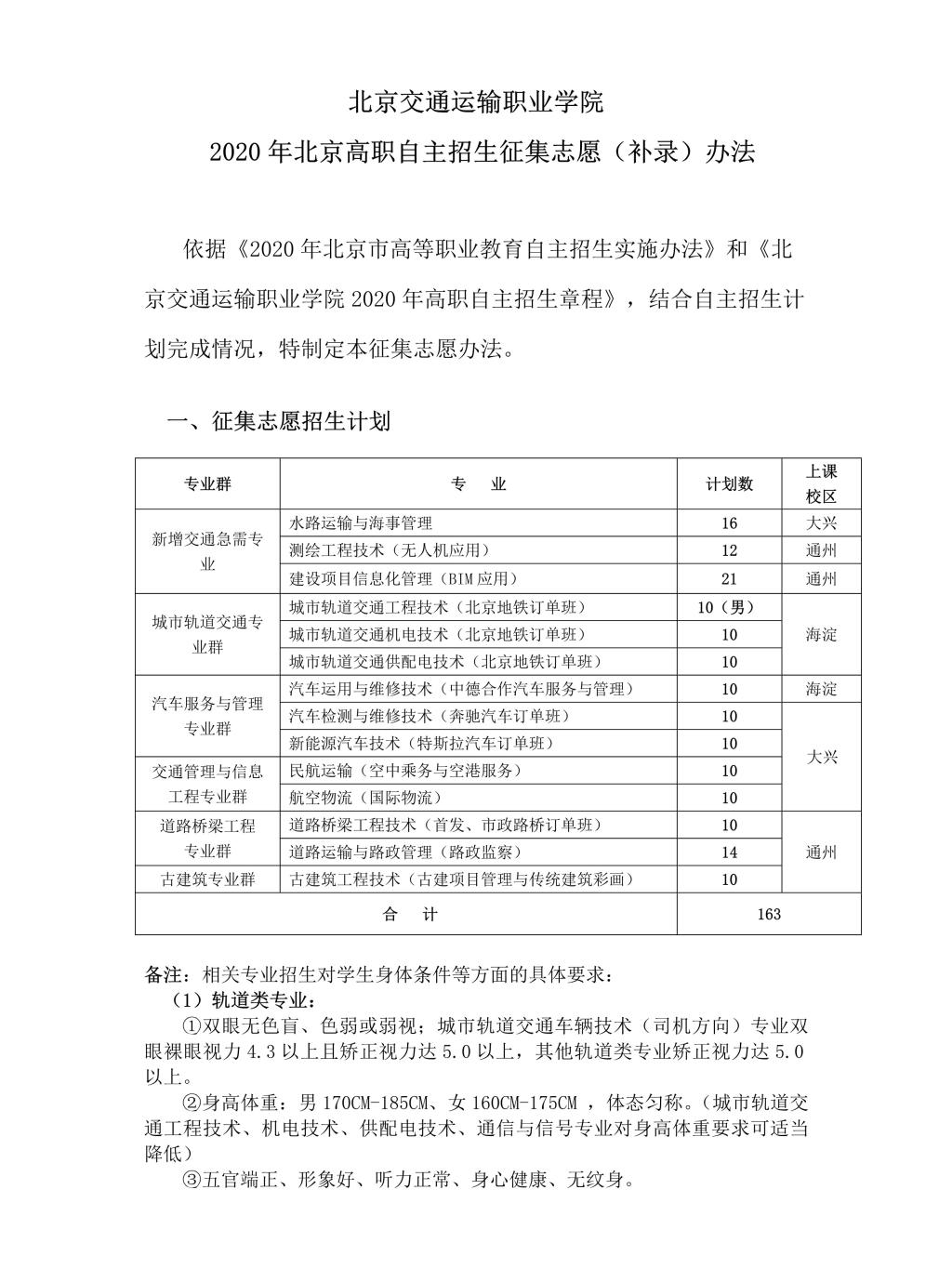 "2020年北京高職自主招生征集志愿(補錄)辦法