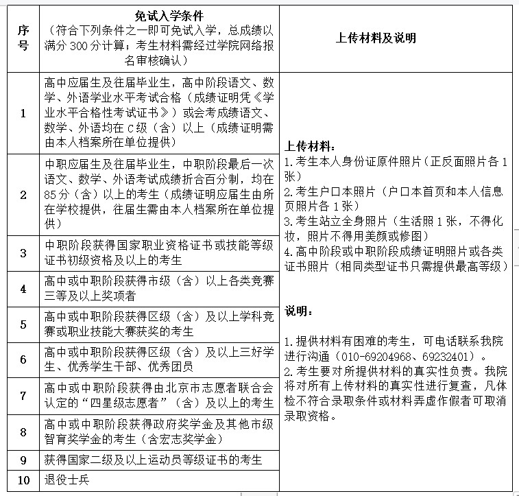 說明: 1.提供材料有困難的考生,可電話聯系我院進行溝通(010-69204968、69232401)。 2.考生要對所提供材料的真實性負責。我院將對所有上傳材料的真實性進行復查,凡體檢不符合錄取條件或材料弄虛作假者可取消錄取資格。 |