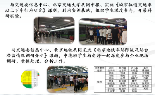 學(xué)院是全國城市軌道運輸類專業(yè)指導(dǎo)委員會主任單位,與北京地鐵聯(lián)合建設(shè)有國內(nèi)最先進的城市軌道交通實訓(xùn)基地,聘請北京地鐵各運營單位和設(shè)備維修單位的技術(shù)骨干和專家為特聘教授參與課程教學(xué)和專業(yè)建設(shè)。同時引進德國德累斯頓工業(yè)大學(xué)ITS(智能交通)課程共建中德職業(yè)本科課程班。