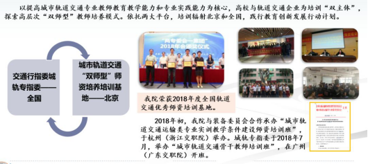 √“師資培訓(xùn)基地”——全國城市軌道交通骨干教師培訓(xùn)基地,北京市教師素質(zhì)提高工程(城市軌道交通專業(yè)群)培訓(xùn)基地;