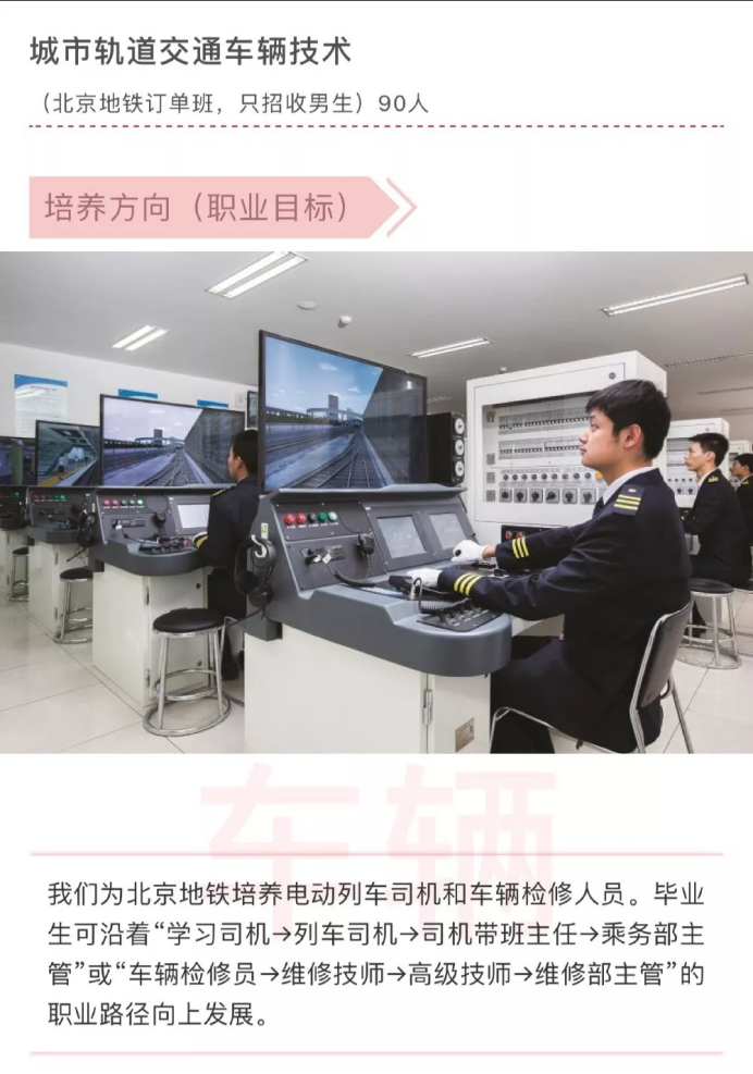 我院是北京開設軌道工程技術專業僅有的幾家之一,與北京地鐵線路公司、京港地鐵公司和北京軌道交通運營公司開展訂單培養,就業穩定有保障,專業對口就業率高,崗位工作相對輕松,職業發展前景廣闊。