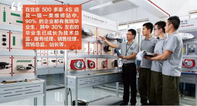 畢業生成為汽車后市場專業技術人員和銷售及售后服務人員的精英團隊,遍布北京中高端汽車品牌經銷店,在汽車診斷與檢測、汽車銷售與服務管理、汽車鈑金與噴漆、汽車配件管理、汽車定損與評估領域發揮了骨干作用。