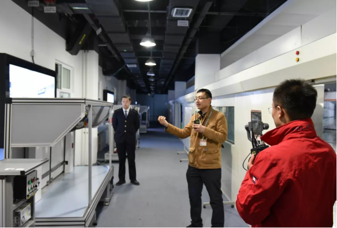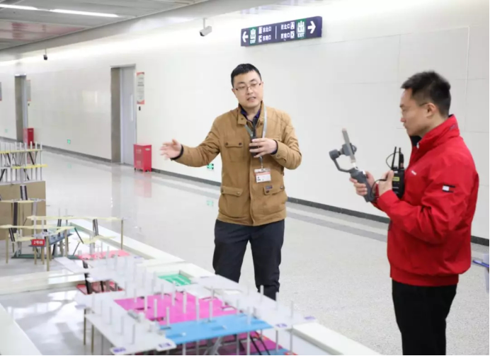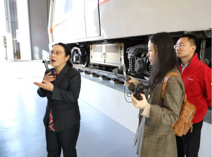 海淀校區軌道實訓基地內,城市軌道學院教師朱曉晨為大家講解各實訓區域功能及作用。