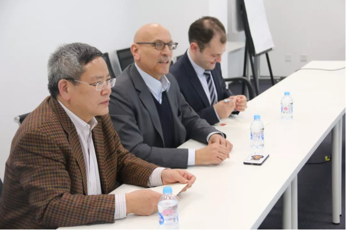 Jürgen Steiger 博士聽完匯報,對SGAVE項目建設過程中的學生選拔、教師培訓、考官認證等方面問題進行了提問,特邀顧問施建年、汽車系主任緱慶偉、教務處長田阿麗分別做了詳細解答。
