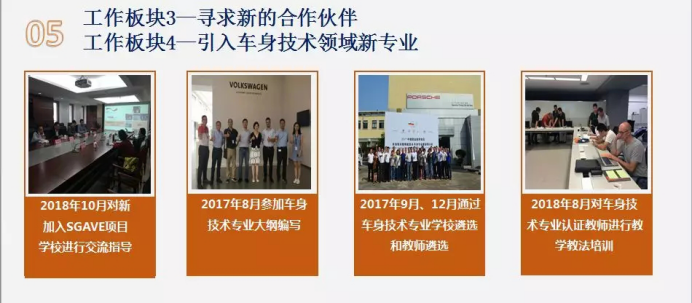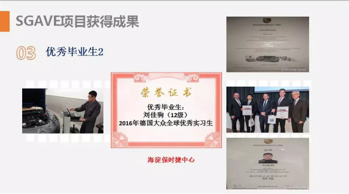 中德職業教育汽車機電合作項目(SGAVE)始于2011年,是中國教育部與德國聯邦經濟合作與發展部(BMZ)和5家德國汽車制造商(保時捷、寶馬、奔馳、奧迪及大眾)之間開展的合作項目。該項目有效地推動了企業汽車機電工程學徒培養標準的制定與完善,目標是提高中國汽車機電技術人才職業教育的水平,使之適應現代汽車技術的需求。