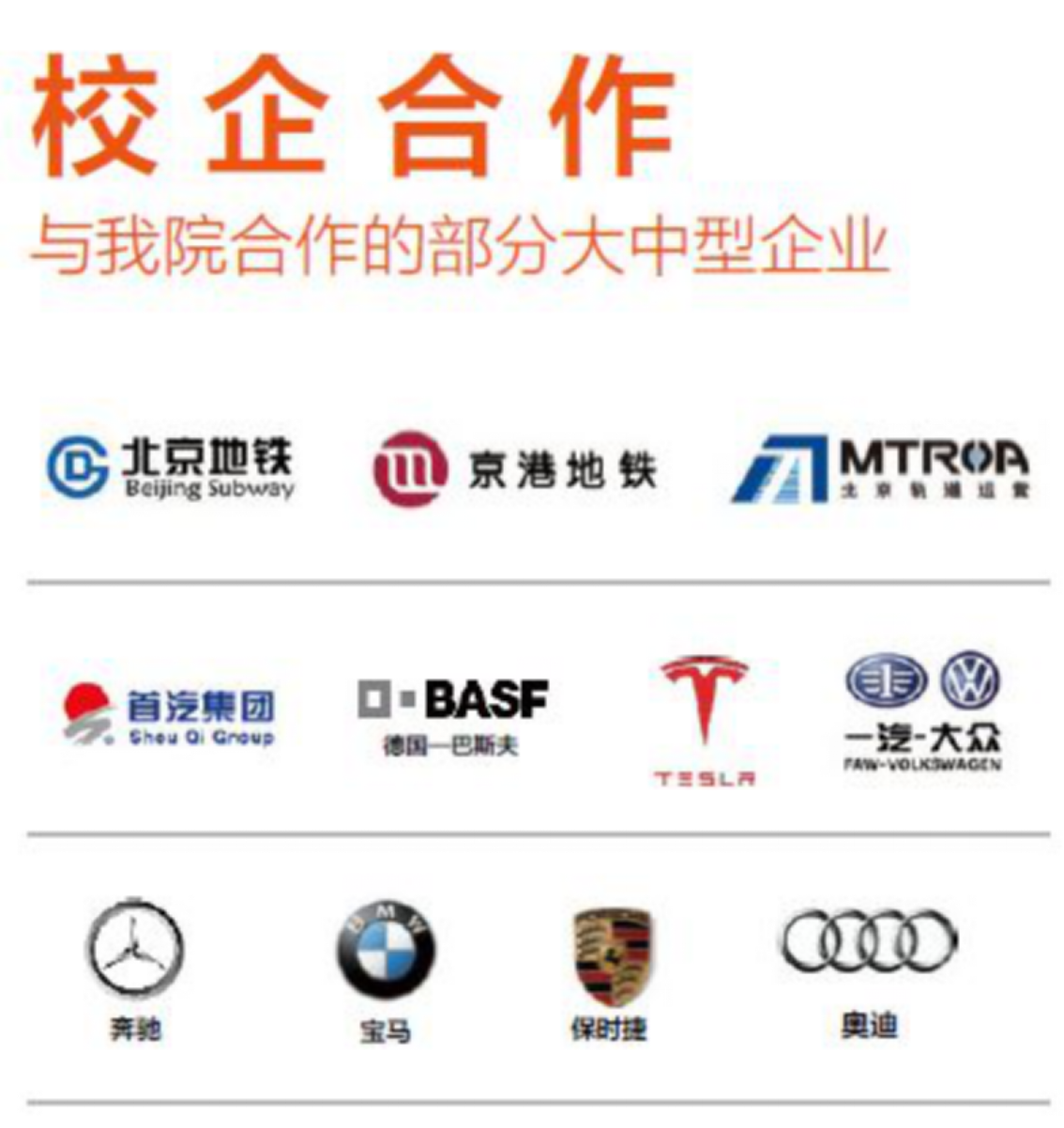 學院是全國城市軌道運輸類專業(yè)指導委員會主任單位,與北京地鐵聯(lián)合建設(shè)有國內(nèi)最先進的城市軌道交通實訓基地,聘請北京地鐵各運營單位和設(shè)備維修單位的技術(shù)骨干和專家為特聘教授參與課程教學和專業(yè)建設(shè),同時引進德國德累斯頓工業(yè)大學ITS(智能交通)課程共建中德職業(yè)本科課程班。