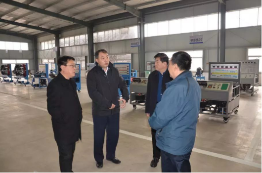 ?幾位領導走訪威縣職教中心汽車實訓車間,相關人員介紹了車間目前的建設情況。