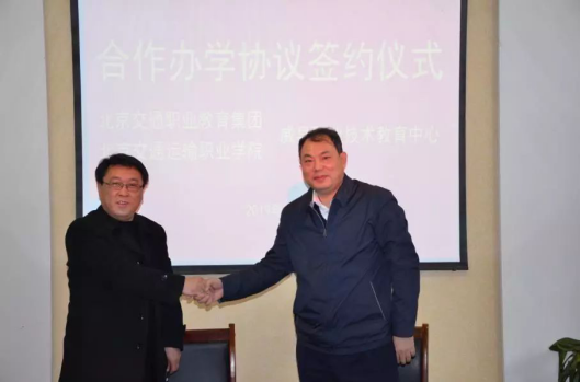 北京交通運輸職業學院領導馬伯夷與威縣職教中心校長張寶行代表雙方簽署戰略合作協議