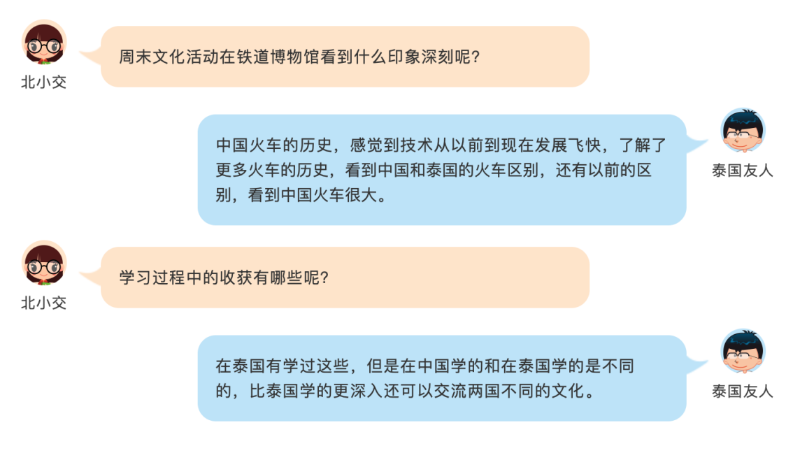 為了讓培訓班的每位學員更好地了解中國文化,體驗風土人情,學院老師帶領大家游覽鐵道博物館等地,實地體驗和感受首都交通建設情況。