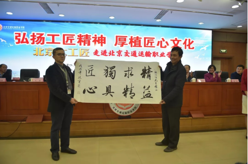 11月7日下午,“弘揚工匠精神,厚植匠心文化”——北京大工匠走進了北京交通運輸職業(yè)學(xué)院。在北京教育系統(tǒng)關(guān)工委、北京市總工會、北京市教委、市交通委,北京祥龍博瑞汽車服務(wù)(集團)有限公司以及學(xué)院200余名師生的共同見證下,全國勞動模范、首屆汽修行業(yè)北京大工匠稱號獲得者、學(xué)院優(yōu)秀校友魏俊強回到母校,與學(xué)院師生一起分享自己的成長故事、工作經(jīng)驗,生動詮釋了什么是“工匠精神”。