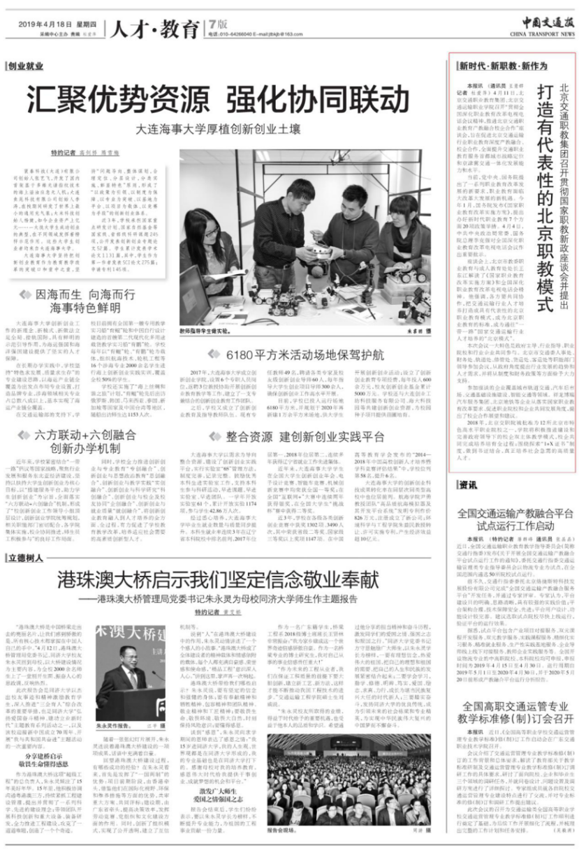 中國交通報報道我院 北京交通運輸行業職業教育深度產教融合、 校企合作,全面提升交通職業教育服務首都城市戰略定位和京津冀交通一體化發展能力和水平。