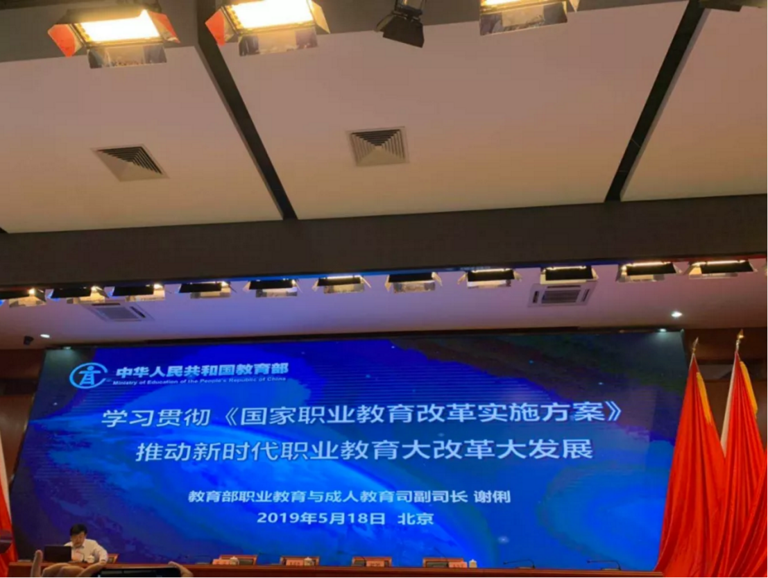 首先由北京交通運輸職業(yè)學院李怡黨委書記致歡迎詞,然后教育部職業(yè)教育與成人教育司謝俐副司長解讀“職教 20 條”包括雙高、1+X、產(chǎn)教融合型企業(yè)等相關(guān)政策。