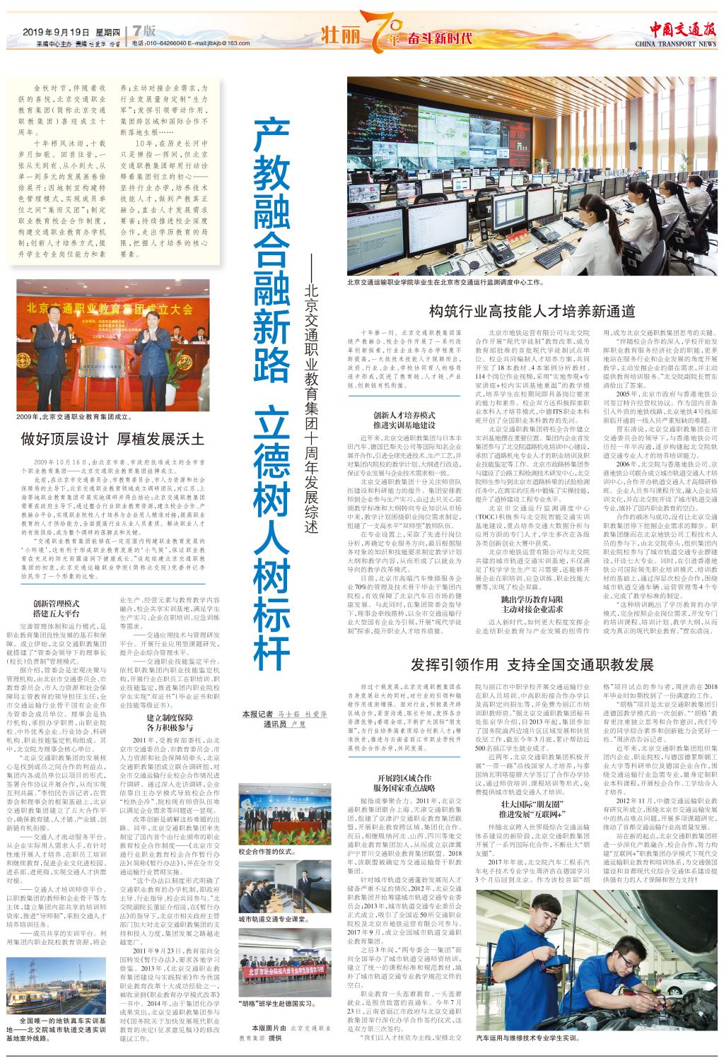 2009年10月16日,由北京市委、市政府批準成立的全市首個職業教育集團——北京交通職業教育集團掛牌成立。