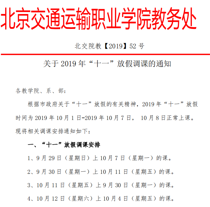 關(guān)于2019年“十一”放假調(diào)課的通知