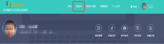 1.登錄進入北京高校大學生就業創業信息網,點擊網頁上方"雙選會"欄目。