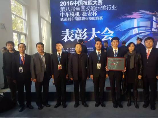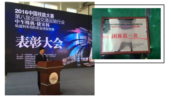 指導(dǎo)學(xué)生參加2016年中國(guó)技能大賽第八屆全國(guó)交通運(yùn)輸行業(yè)“中車(chē)株機(jī)·捷安杯”軌道列車(chē)司機(jī)職業(yè)技能競(jìng)賽,奪得學(xué)生組團(tuán)體冠軍。