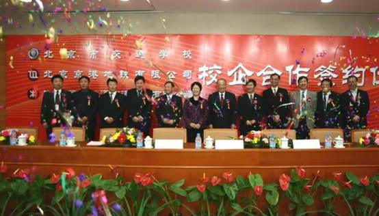 2005年,全國首個中外合作特許經營城市軌道交通項目——北京地鐵四號線獲得批準,在四號線啟動建設的同時,人才問題成為擺在香港鐵路、京港地鐵公司面前的一個重大難題。在市交通委的“撮合”下,香港地鐵公司、京港地鐵公司開始與學院商討,通過校企合作的方式建立城市軌道交通人才培養體系,滿足地鐵四號線用人需求。經過一年半的談判,從無到有、從弱到強逐步構建起學院軌道交通專業人才的培養培訓能力。