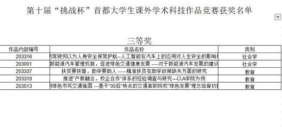 思政部思想會客室在第十屆“挑戰(zhàn)杯”首都大學(xué)生課外學(xué)術(shù)科技作品競賽中,陳慧老師指導(dǎo)的6個參賽作品,5個獲得北京市三等獎獎項。學(xué)院榮獲第十屆“挑戰(zhàn)杯”首都大學(xué)生課外學(xué)術(shù)科技作品競賽“優(yōu)勝杯”獎項。為我院在首都大學(xué)生挑戰(zhàn)杯大賽中帶來新的突破。