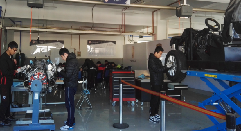 2015年我校作為基地院校創辦了保時捷實訓基地,負責一些兄弟院校的基地集訓,完成銅級認證前的理論和實操學習。